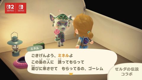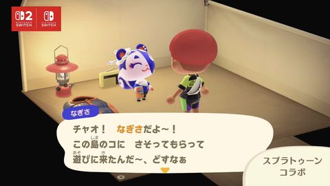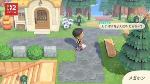 Switch2のマイク機能を使ったアイテム「メガホン」が登場。住民の名前を呼ぶと返事をして、どこにいるか分かるようになります。