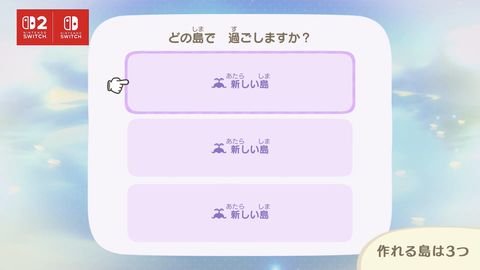 島の大きさも大・中・小と選べて、3つまで島を保存できます。