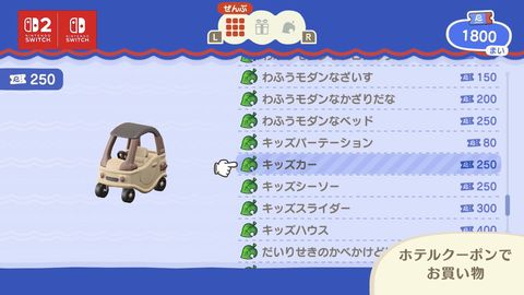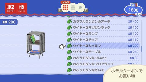 たぬきショッピングでは、LEGOコラボ家具が購入できるように。
